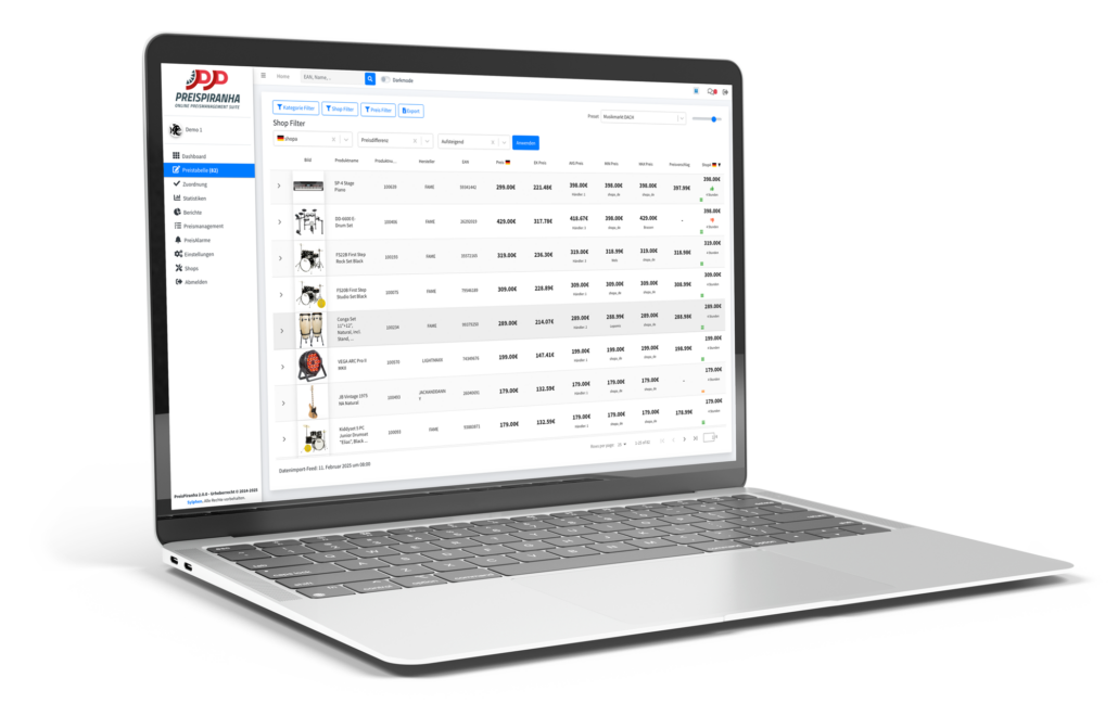 Mit der neuen Händleranalyse in PreisPiranha verschaffen Sie sich den entscheidenden Wissensvorsprung. Erkennen Sie Preisentwicklungen, reagieren Sie frühzeitig auf Veränderungen im Wettbewerbsumfeld und steuern Sie Ihre Preisstrategie datenbasiert und effizient.
